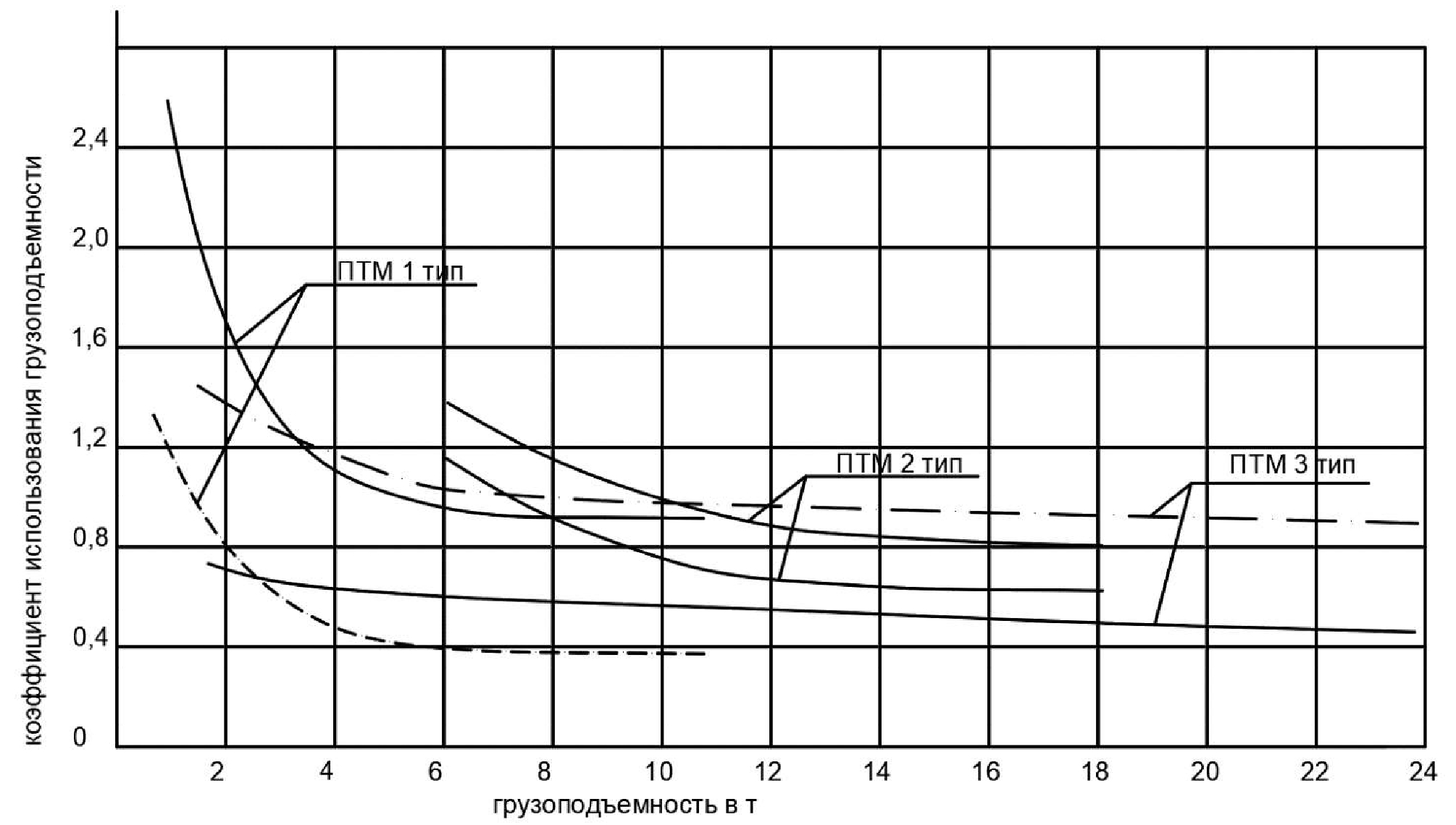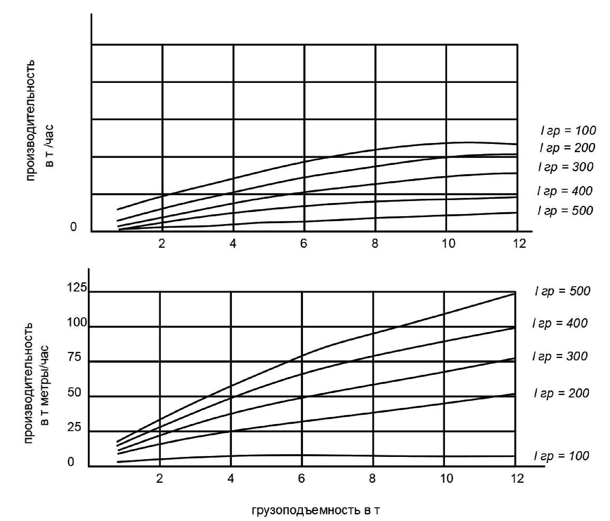 Производительность погрузочно-транспортных машин возрастает по мере увеличения грузоподъемности, до 6-7 т ‒ по закону гиперболы, а далее ‒ по закону прямой линии. Наиболее интенсивный рост производительности отмечается у погрузочно-транспортных машин третьего типа, затем ПТМ второго типа, а самый малый ‒ у одиночных ПТМ первого типа.