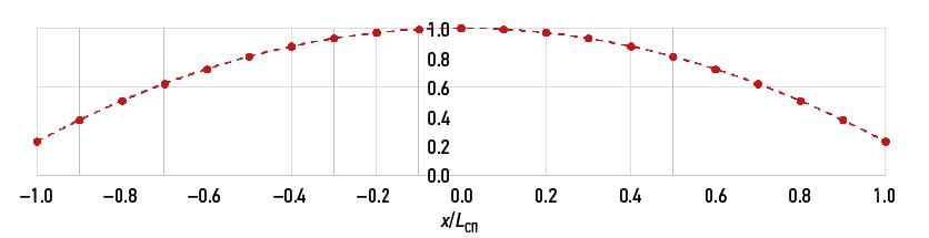 Наличие таких зависимостей позволяет определить величину расчетного изгибающего момента в любом сечении по длине дока. Форма кривых показывает, что требования к общей прочности существенно различаются в зависимости от положения расчетного сечения по длине дока. При этом в пределах средней части дока (±0,2LСП от миделя) расчетные изгибающие моменты изменяются не более чем на 15–25%.