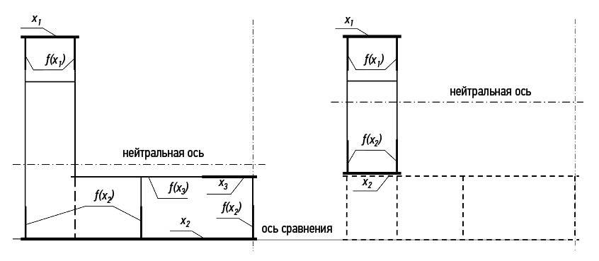 В качестве целевой функции принимается математическая зависимость площади сечения эквивалентного бруса от варьируемых параметров.