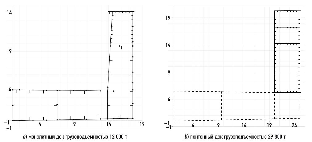 Монолитный док 12 000 т | Понтонный док 29 300 т | |||
