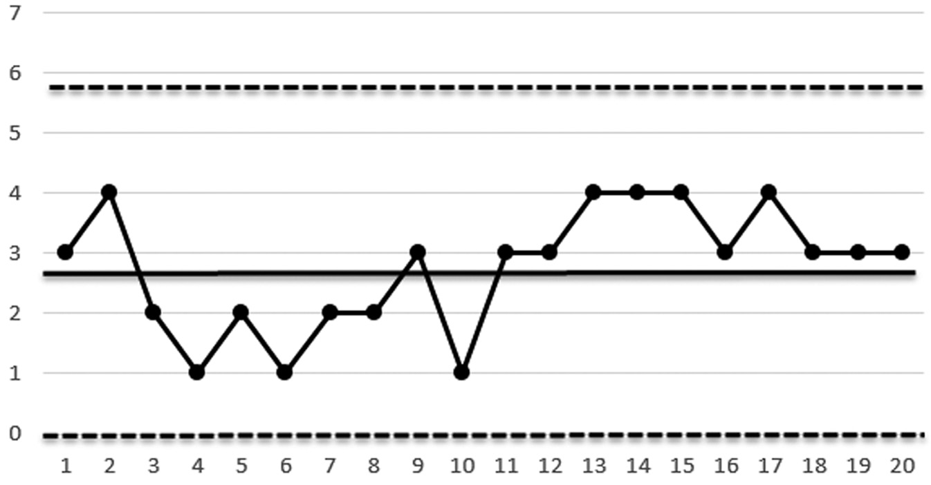 На рис. 3 представлена контрольная карта средних арифметических значений, демонстрирующая процесс, находящийся в статистически управляемом состоянии.