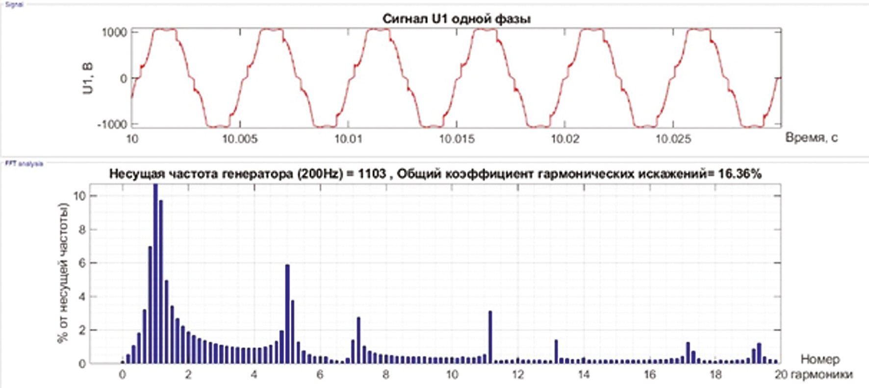 Рис. 2. Гармонический состав на статоре генератора с использованием активного выпрямителя